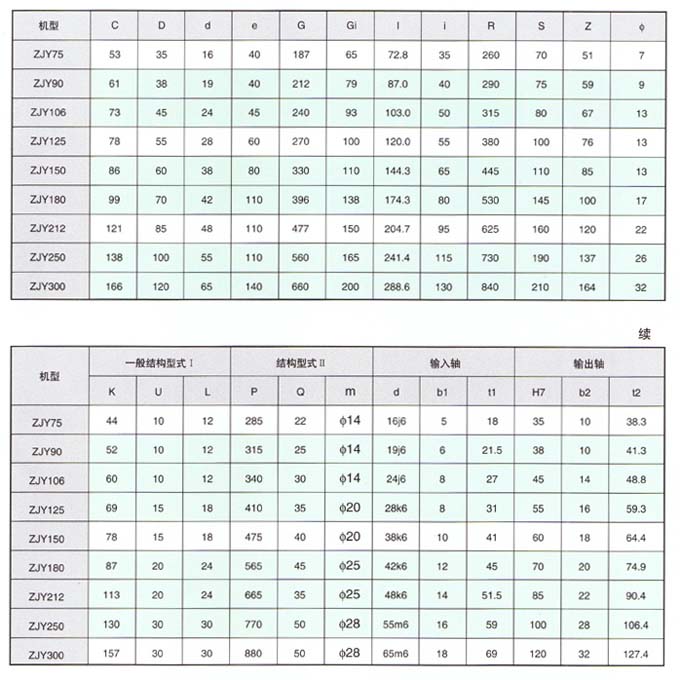 1、ZJ型軸裝式減速器用于輸送機(jī)和斗式提升機(jī),以及其它懸掛安裝的通用機(jī)械的傳動;